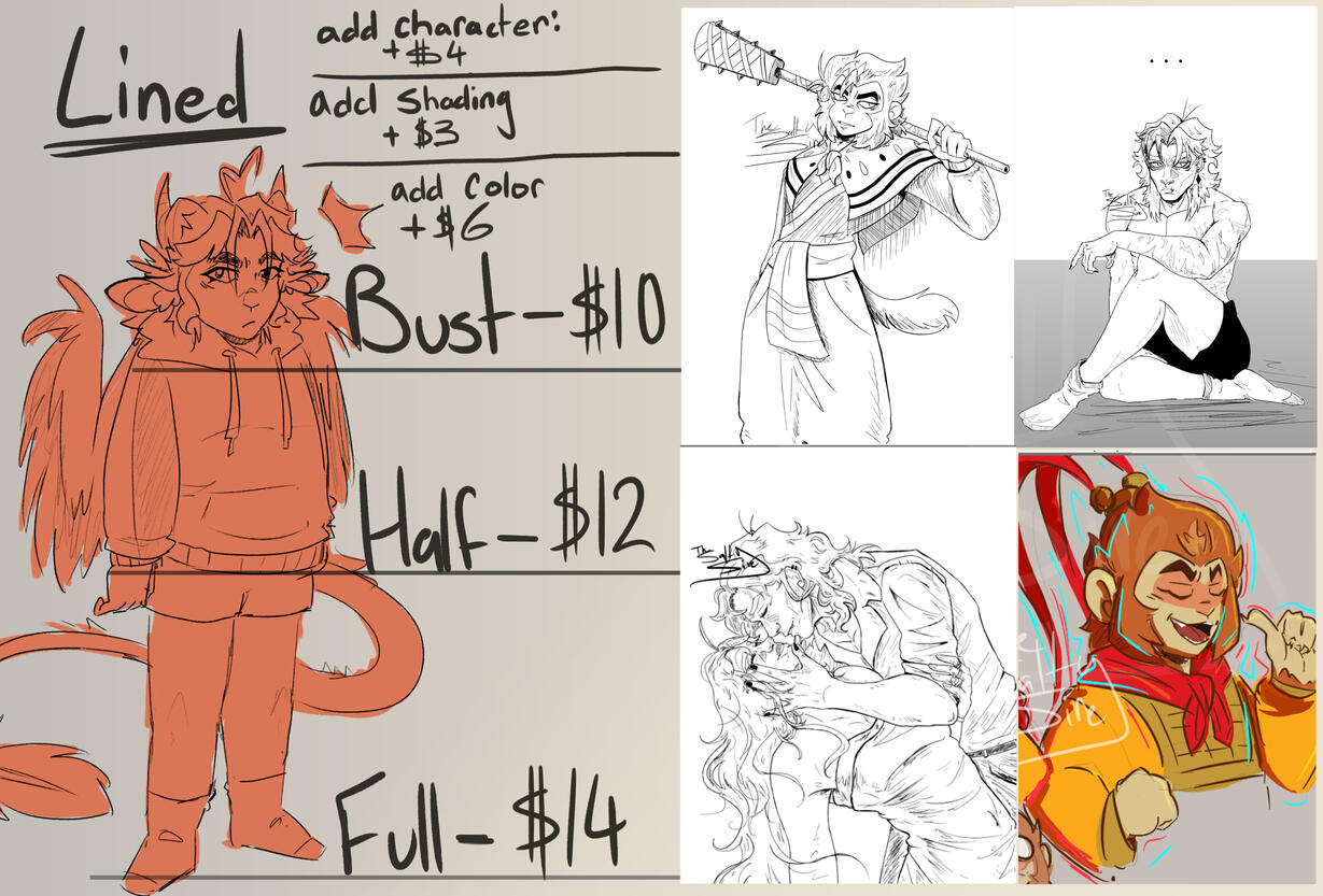 - Payment up front before further work begins (PayPal USD)- Work may take up to 2 weeks- Be clear in what you want, I cannot read minds and want to be reasonable- If need be, refunds or partial refunds will be discussed depending on the situation or progress on the work- Work is for personal use only, No commercial, business, anything that makes money off my work, etc.- Watermarks stay, do NOT try to edit them out- My work is not to be used for NFTs or AI engines- I will retain the right to decline anything that I am not comfortable with
